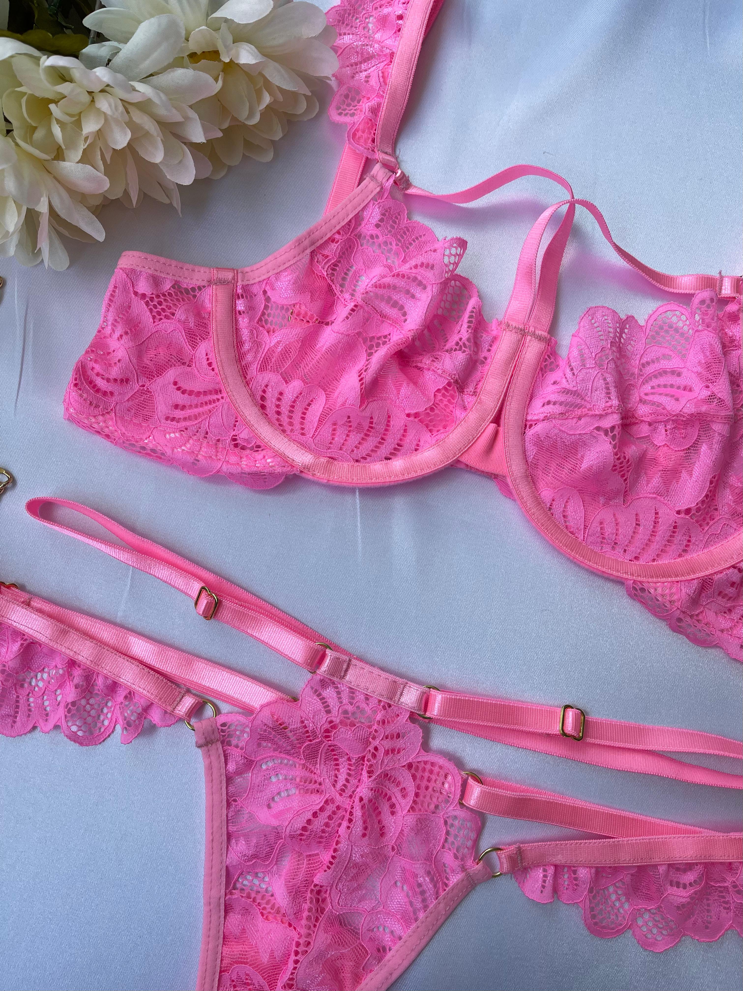 Set en dos piezas polilicra y encaje , hombreras en bra y panty , talla única en panty ajustable con doble corredera.