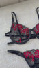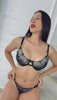 Bralette sin copa y con varilla, panty graduable, tela encaje, herrajes dorados de corazón